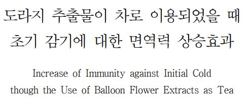 위 논문에서는 초기 감기 증상을 겪는 성인들을 대상으로 도라지차를 마시게 하고 도라지차를 마시는 동안 감기 증상의 개선에 도움이 되는지를 알아보았던 논문입니다. 결과가 어땠냐 하면 도라지차가 갖는 유효한 성분들이 우러나와서 기침, 가래와 같은 호흡기 증상들의 완화에 도움을 주었고 체력에도 영향을 미쳐서 피로감에서도 벗어날 수 있었다고 합니다.