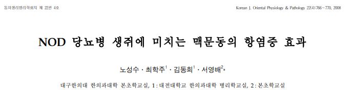 위 논문에 따르면 췌장에서 인슐린 분비가 되지 않는 제 1 당뇨형(nod)의 생쥐에게 맥문동 추출물을 먹였는데 췌장 조직의 염증이 줄어들었고 췌장에서 인슐린이 증가되어 결국 혈중 혈당량이 낮아진다고 밝히고 있습니다. 혈청 내의 인슐린 분비량이 아무것도 처리하지 않은 대조군에 비해 6.6배 증가했다고 밝히고 있습니다.
