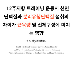 위 논문에서는 실험인데요 천연 단백질 및 분리유청단백질 효능에 근육량이 증가하고 체지방률이 감소 효능이 있음을 밝히고 있습니다.